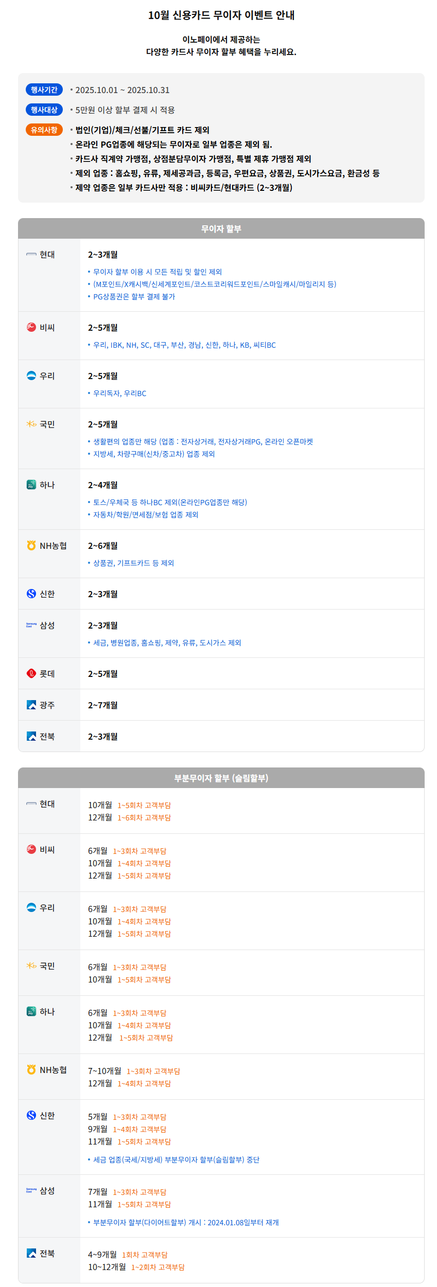 제목 [공지] 2025년 10월 신용카드 무이자 안내 내용