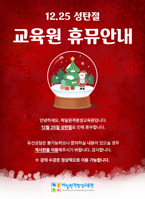 제목 성탄절 휴무 안내