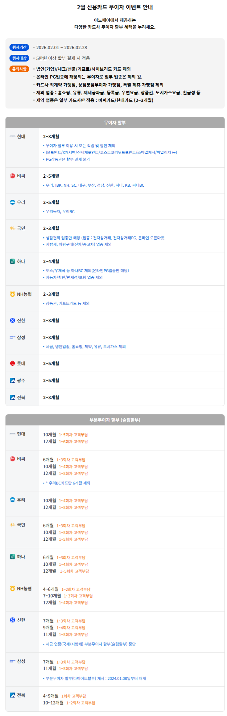 제목 2026년 2월 신용카드 무이자 안내 내용