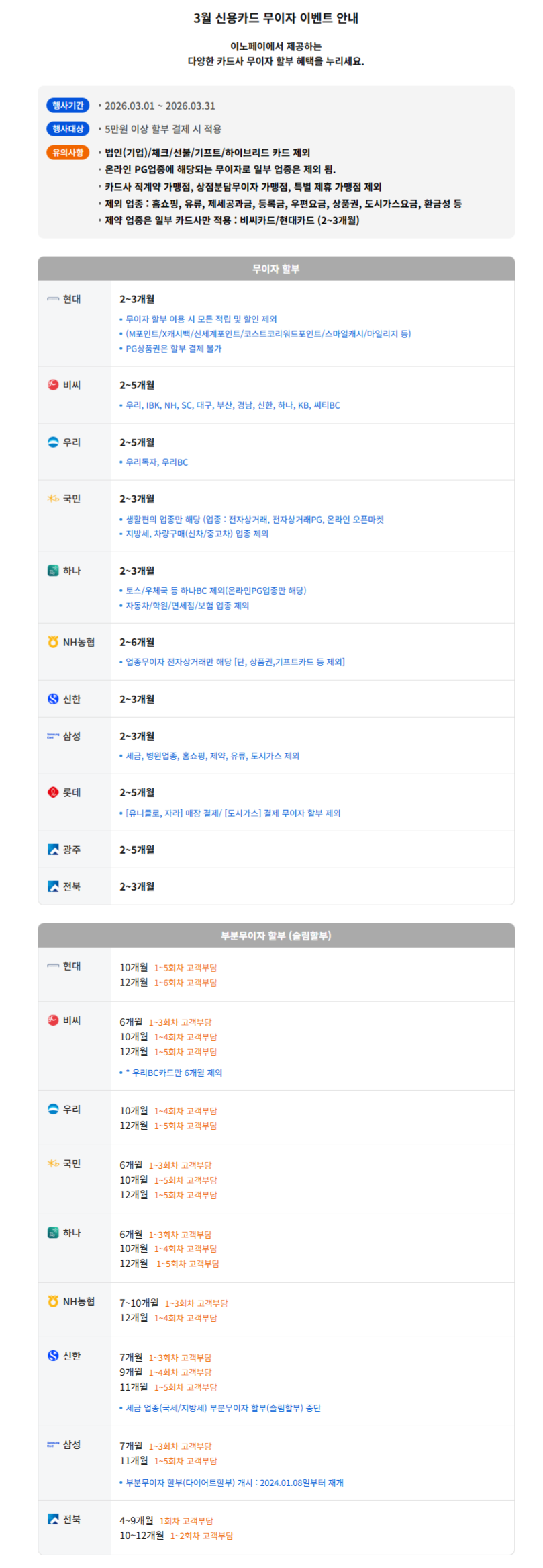 제목 2026년 3월 신용카드 무이자 안내 내용