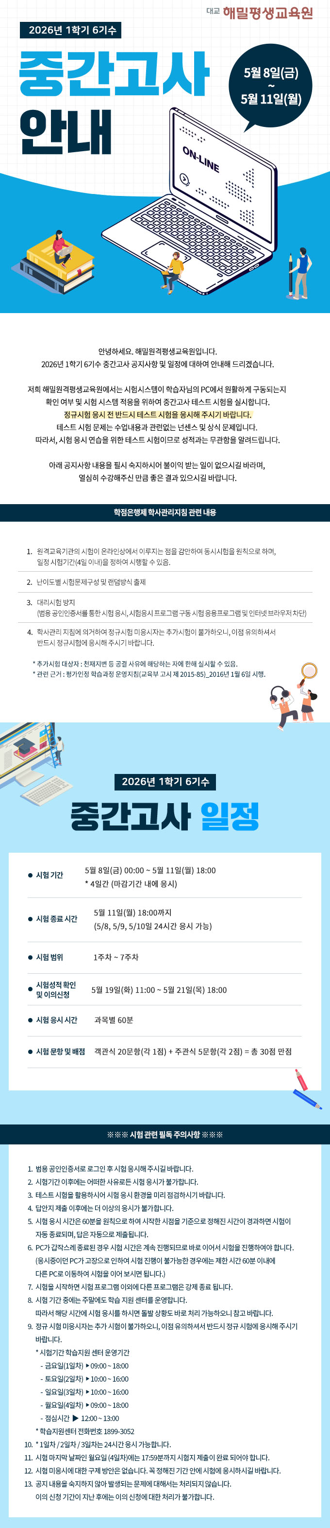 제목 [공지]1-6기 (2026년 3월 18일 개강반) 중간고사 시험 관련 내용